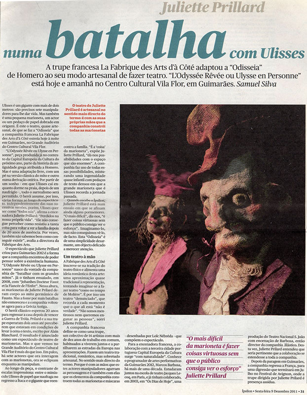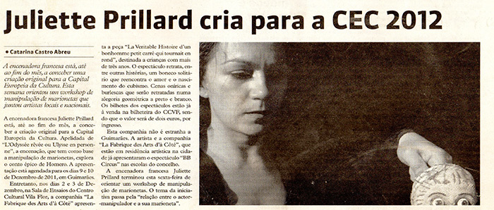 Avec ce spectacle, Juliette Prillard fait l’ouverture de Guimaraes, Capitale Culturelle Européenne 2012.